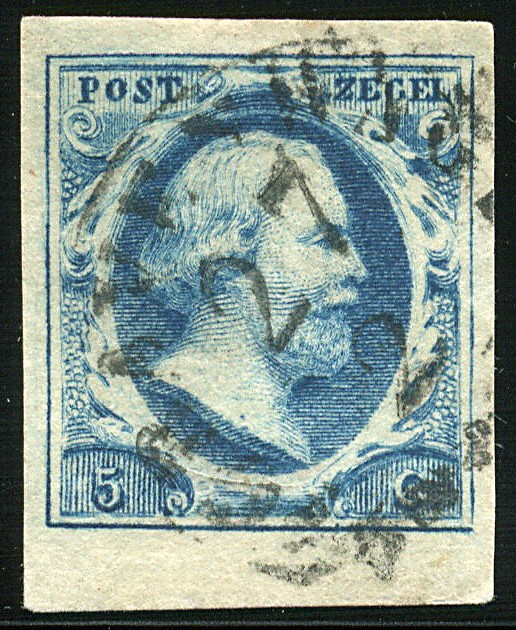 1a-Pl.I-49. Pracht randstuk in diepdonkerblauw op dun papier
