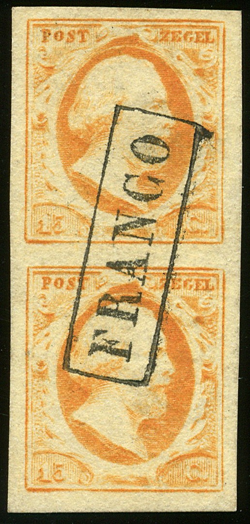 3c, pos. 16/21. Breed gerand, zeer mooi gestempeld prachtpaar