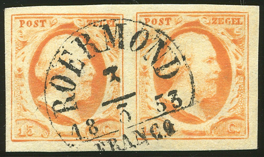 ROERMOND B (EY.125) op 15 cent nr. 3b, pos. 11/12. Breed gerand prachtpaar met zeer mooie, centrale afst.