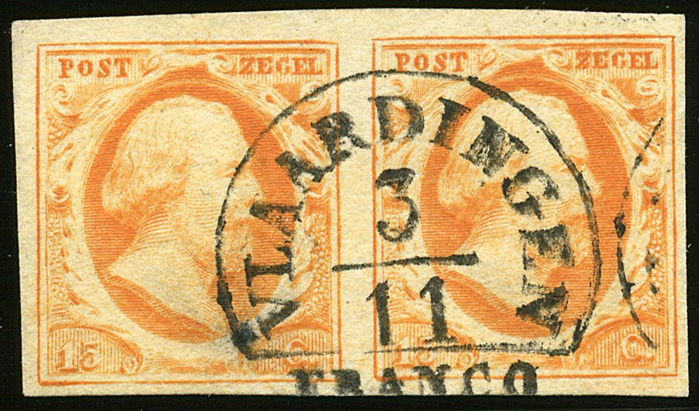 VLAARDINGEN A (EY.200) op 15 cent nr. 3b, pos. 64/65. Prachtpaar met ideale, centrale afst.