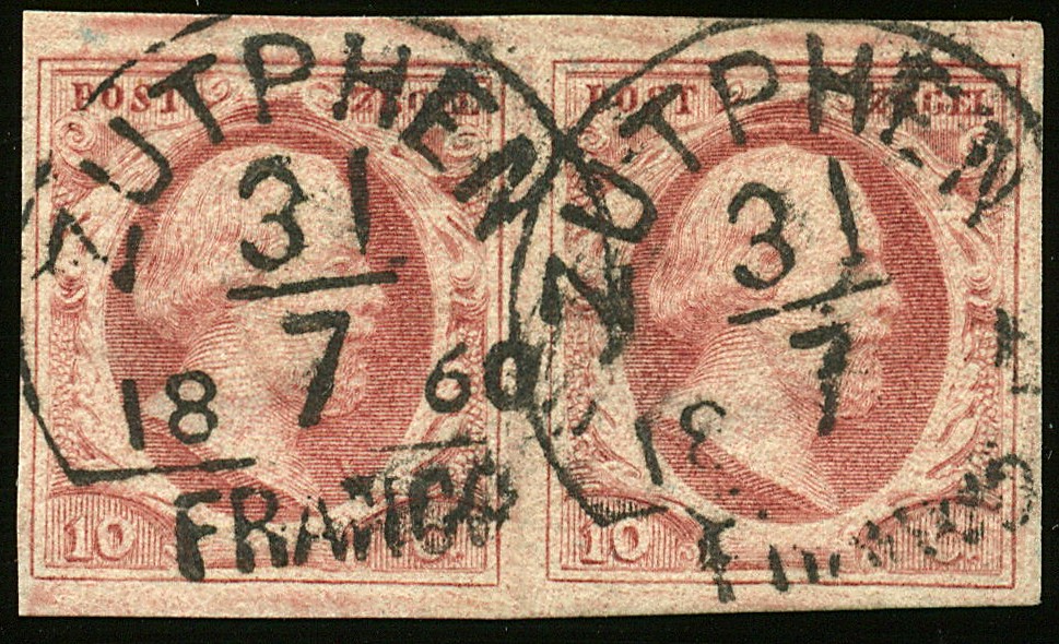 ZUTPHEN C (EY.75) op 10 cent nr. 2j-Pl.V-34/35. Prachtpaar met twee afst.