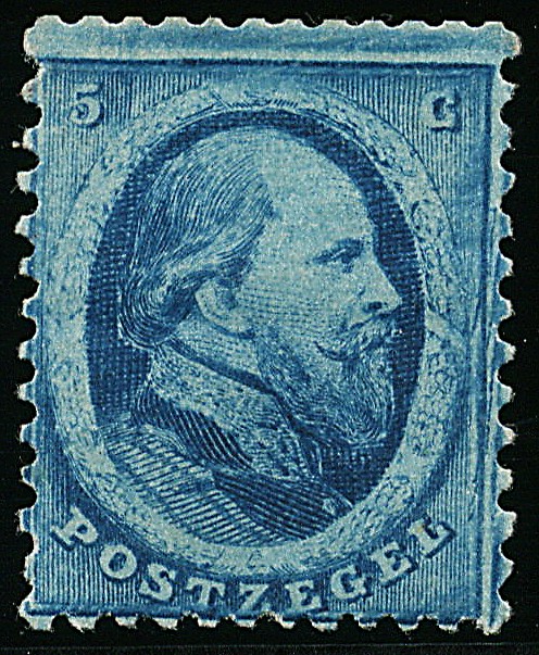 4BI, 5 cent donkerblauw plaat I, ongebruikt prachtex. (niet storende gomvouw), met cert. NVPH (1974) €.450