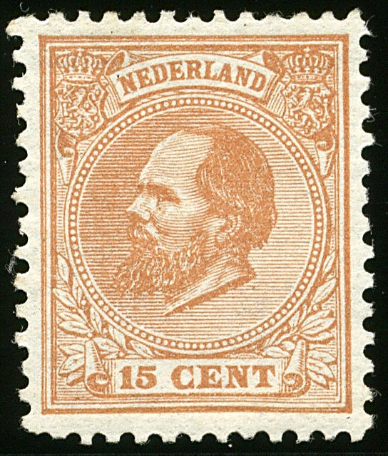 23H, 15 cent oranjebruin, Kt.12½ x 12½ gr.g., postfris prachtex. met certificaat Vleeming (2016) €.4250