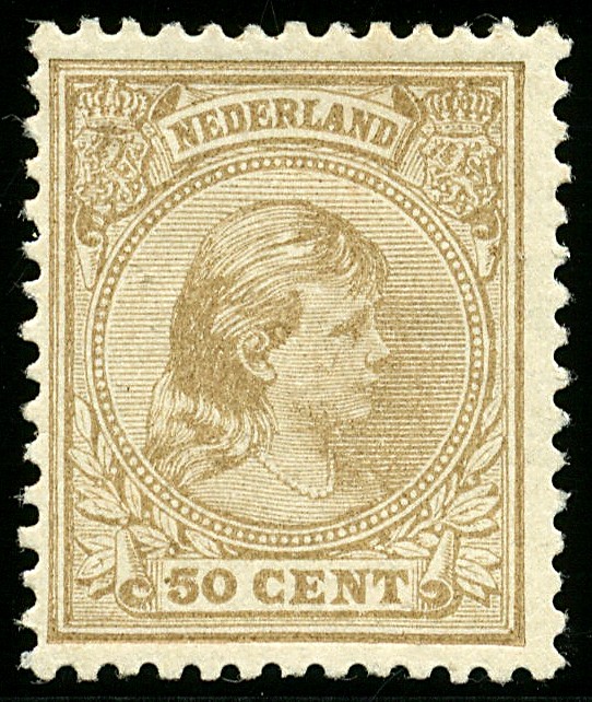 43b, 50 cent geelbruin, ongebr. prachtex. met de originele puntjes in de gom €.750