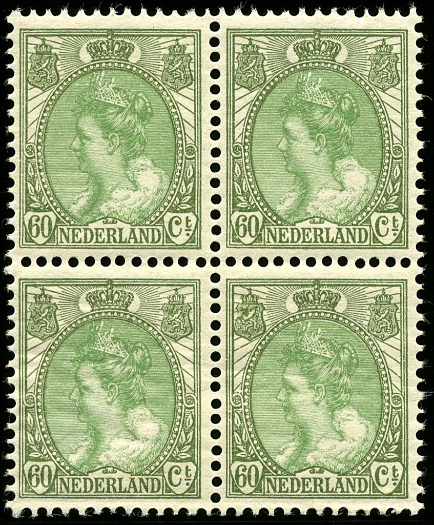 76, 60 ct. olijf en groen in postfris prachtblok van vier €.500