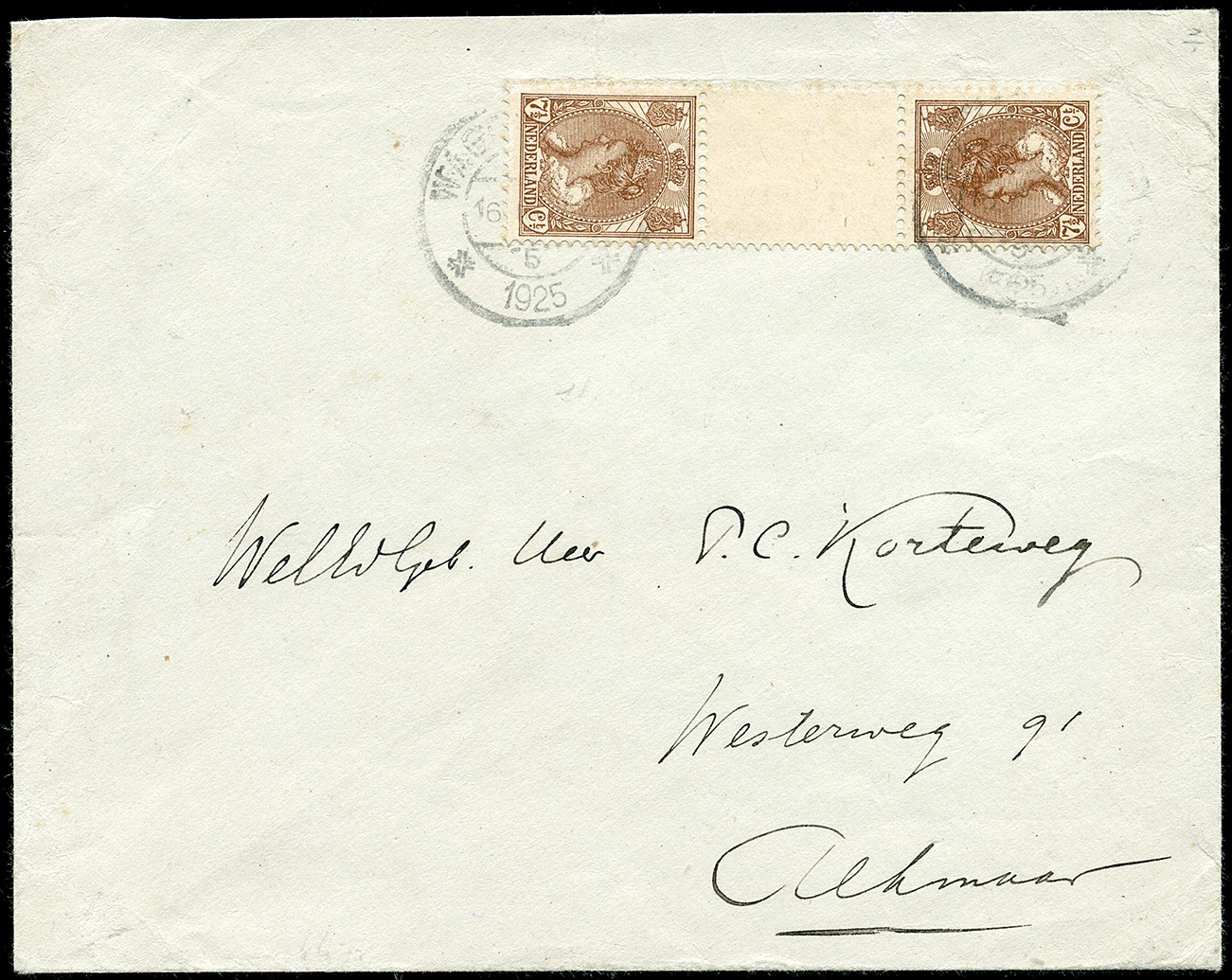 61b en 61c, Keerdrukken op twee enveloppen, van Breda 26-6-1933 bijgefrankeerd per luchtpost naar Praag, resp. als enkelfrankering van Wageningen 16-3-1925 naar Alkmaar