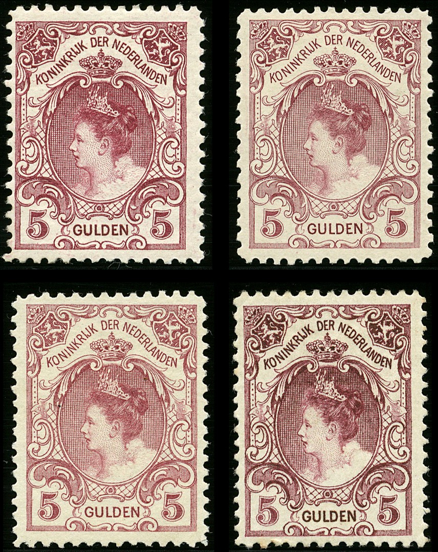 77A/79A, 77B/79B, 77C/79C en 77D/79D, 1, 2½ en 5 Gulden in alle tandingen, cpl. ongebruikte prachtex. €.1890