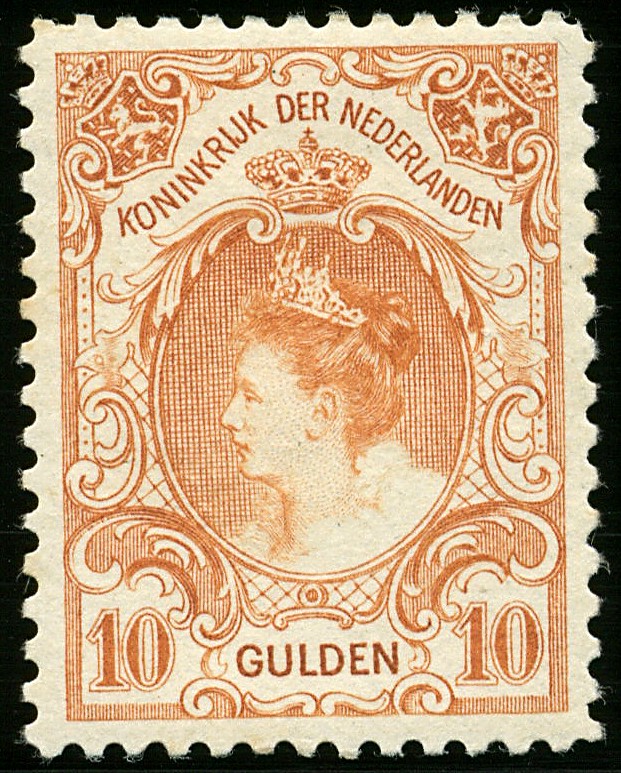 80, 10 Gulden oranje, ongebruikt vrijwel prachtex. (min. bruin vlekje onder de plakker) €.950
