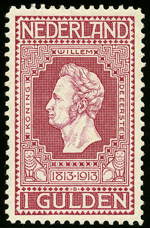 98B, 1 Gulden wijnrood, Lt.11½, postfris prachtex. €.350