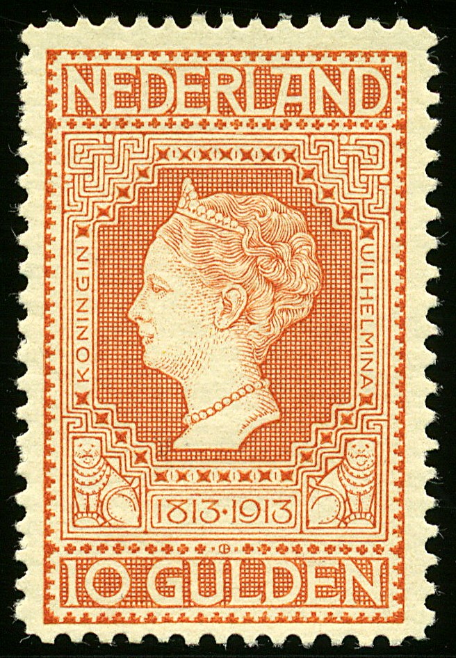 101, 10 Gulden roodoranje, ongebruikt prachtex. met cert. Moeijes (1992) €.950