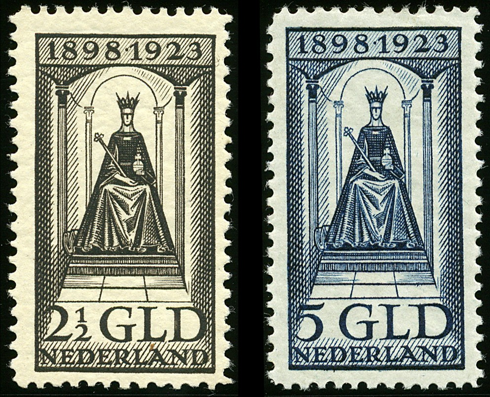 121/31, Jubileum 1923, complete postfrisse prachtserie, cert. C. Muis (1988) voor de nrs.129/31 €.1280