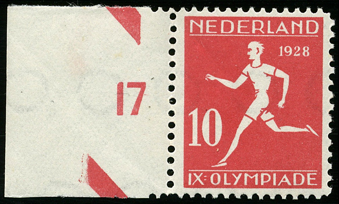 217A, 10 cent Olympiade, tanding 12 x 11½, postfris randstuk met cijfer bedrukking 17 €.200