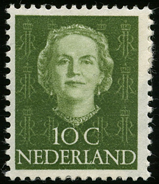 520, 10 cent Juliana En Face in de kleur olijfgroen met kroontje op hoofd van de koningin-vernietigde oplage, ongebruikt prachtex., afkomstig uit het enig bekende oorspronkelijk blok van 8. Cert. C. Muis (1998)