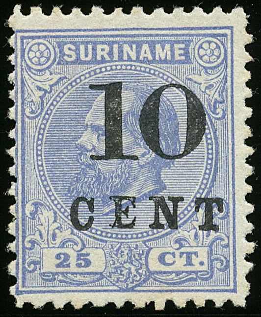 32aD, 10 cent op 25 ct. ultramarijn, Kt.11½ x 12, ongebruikt prachtex. met cert. NVPH (1993) €.825