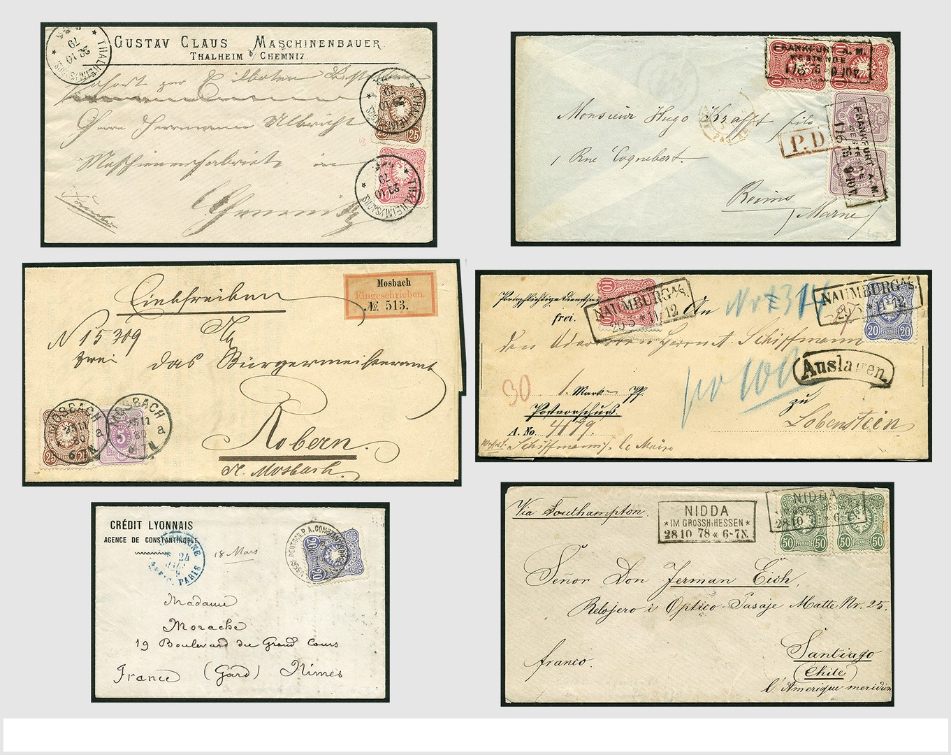DEUTSCHES REICH 1875-1879, "Pfennige", Sammlung mit über 290 Briefen/Karten, dabei EF, MiF, MeF, gute Auslanddestinationen und schöne nachverwendeten Stempel, in 3 Alben