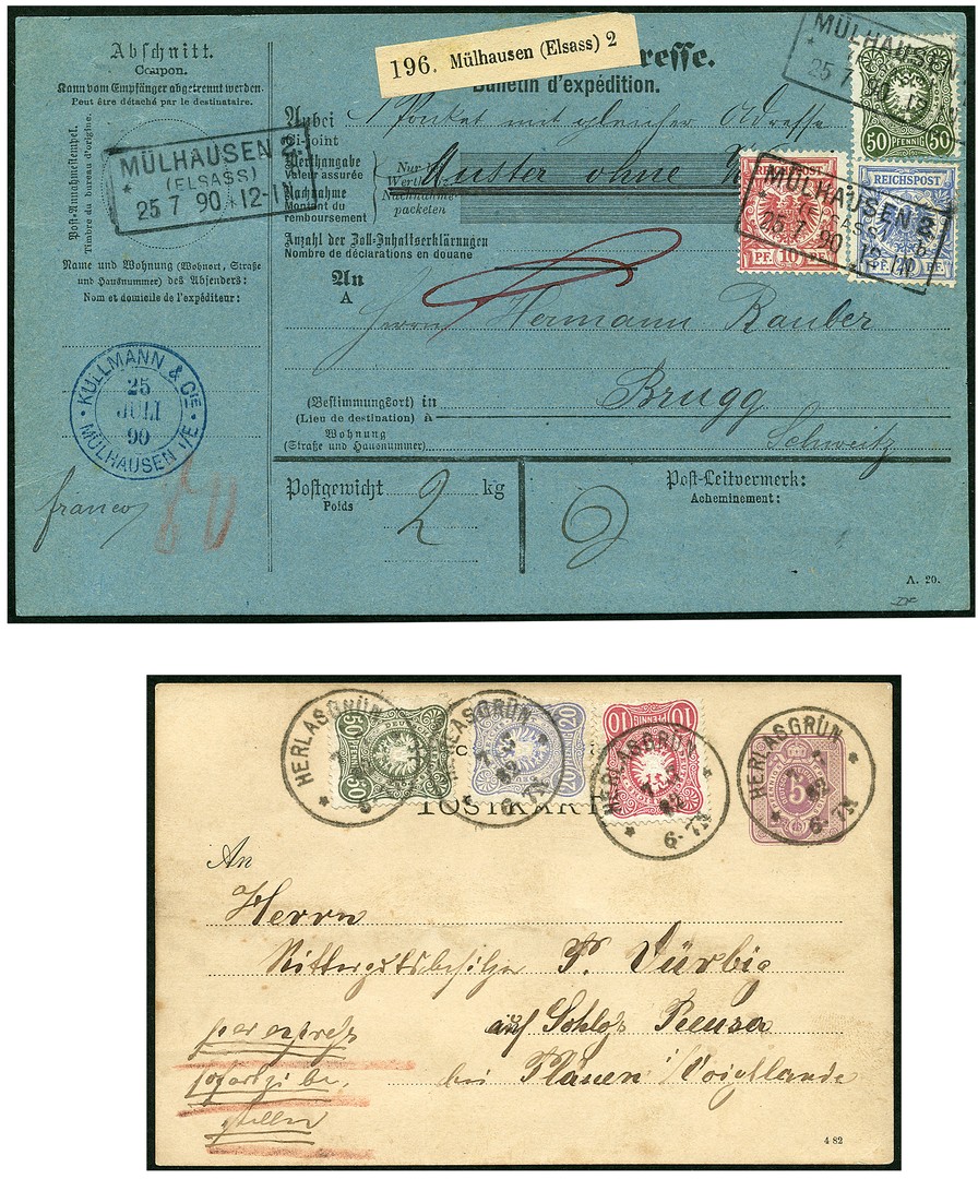 DEUTSCHES REICH 1880-1889, "Pfennig", Sammlung mit über 250 Briefen/Karten/Paketkarten, dabei EF, MiF, MeF, gute Auslanddestinationen, u.a. East India, Ungarn, Luxemburg, schöne nachverwendeten Stempel, usw. in 2 Alben