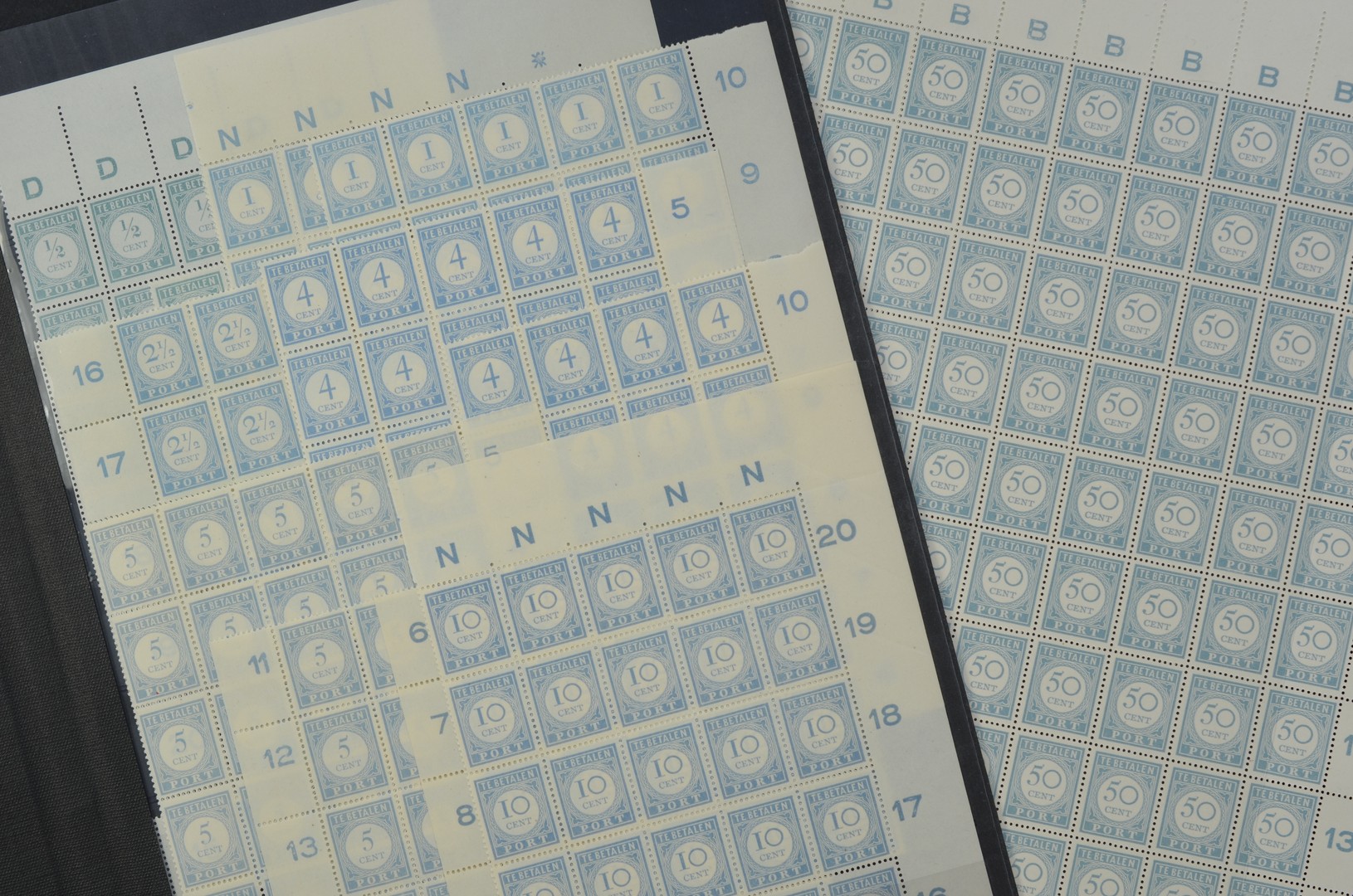 Port, emissie 1934-1946, in Kt.13½ x 12¾, tussen 44B-58B in veldeeltjes alsmede de 50 cent nr. 60B in compleet postfris vel van 200 stuks €.1039