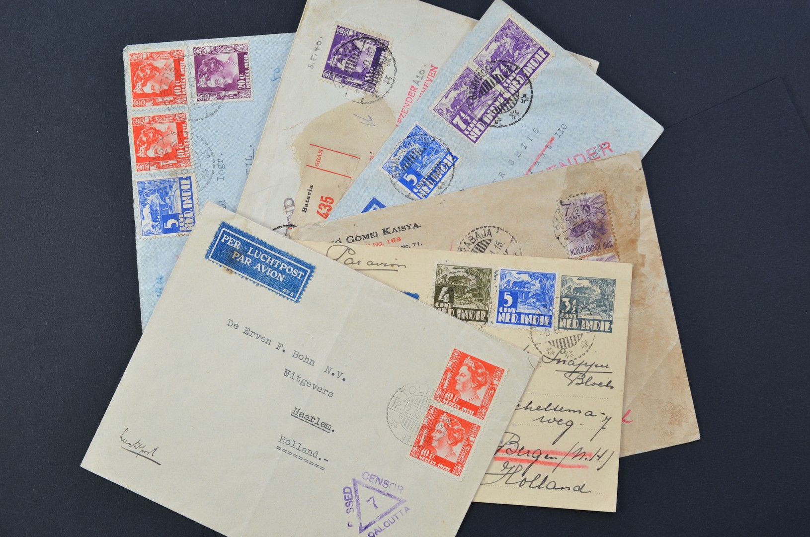 NED.- INDIË POSTHISTORIE. Zes poststukken 1939-41 o.a. uit Tolitoli '39 w.o. met censuur, verbroken verbindingen (div. stempeltypen), etc.