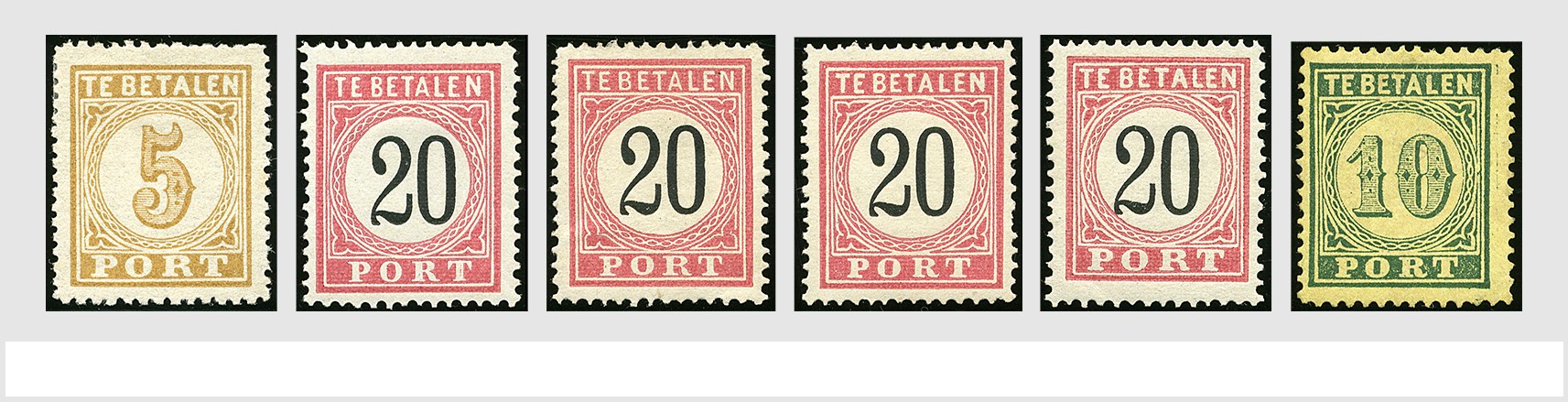 NED.- INDIË Port 1874-1892, ongebruikte collectie met typen en tandingen van de eerste 3 emissies met o.a. 1/4 en 9 (9x) met 2x Type IV. Leuke koop!