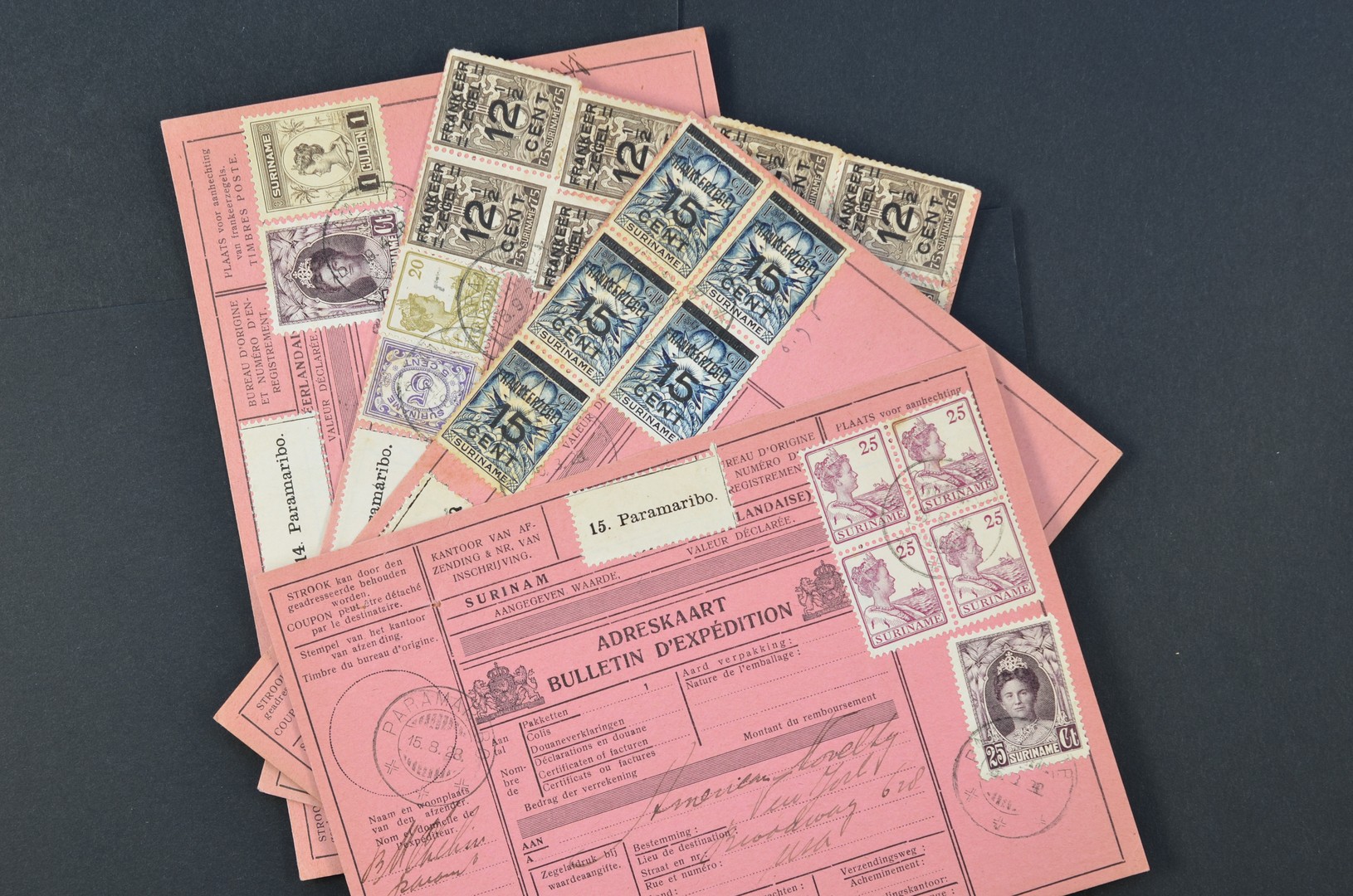 SURINAME POSTHISTORIE. 8 Adreskaarten (2 typen) 1926-29 naar de USA met diverse frankeringen