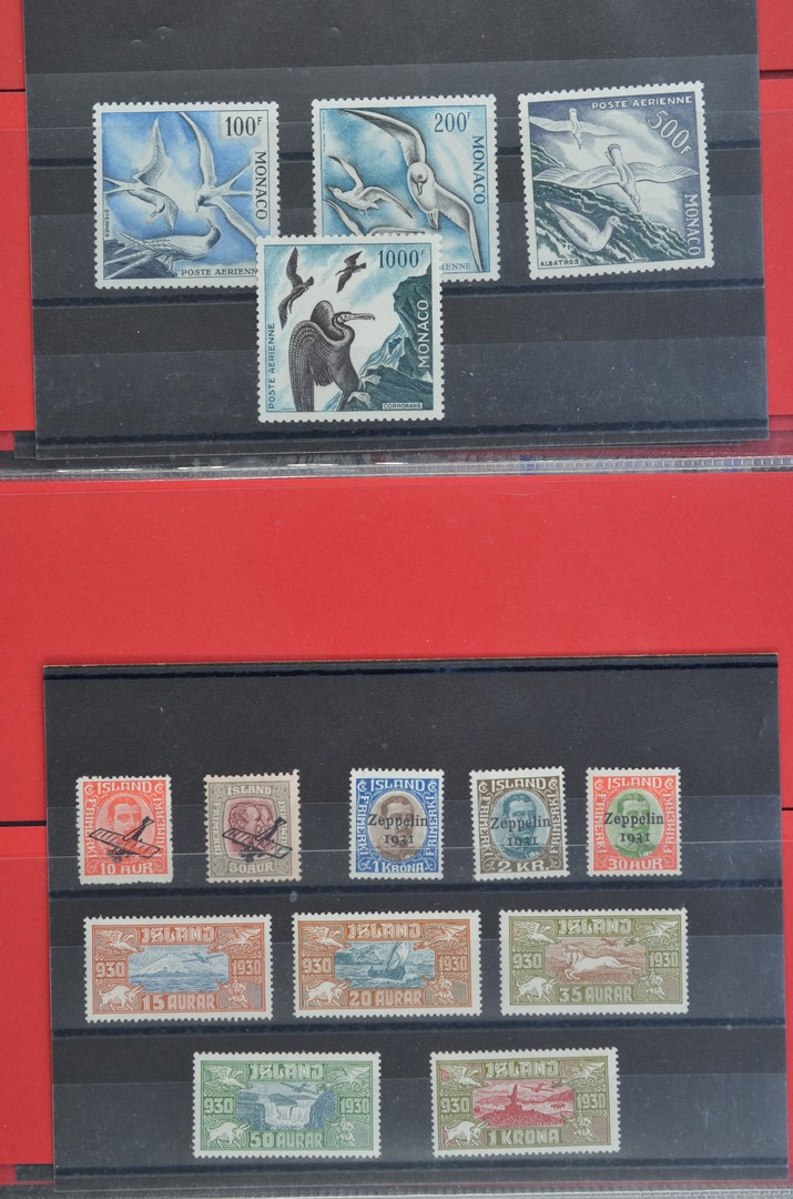 MONACO en IJSLAND, Luchtpostseries met o.a. Monaco Yv.55/58 en IJsland Mi.142/46 en 147/49, etc. Mooie koop!