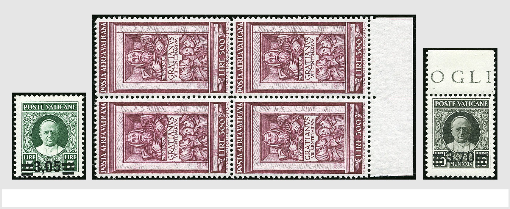 VATICAAN 1929-1952, */** betere series op 4 insteekkaarten, w.b. 39/44 (Provisoriën) ongebruikt, 45/50, 51/58, tevens 161/62 en 185/86 in postfrisse blokken van 4, en blok 1(4x)