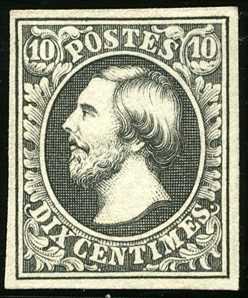 LES 10 CENTIMES NEUFS 1a, 10 centimes 'noir', 1er tirage, impression fine. Le timbre neuf le plus rare de cette émission et une des grandes raretés de la philatélie du Luxembourg, 3 exemplaires connus dont celui-ci dans son état de fraicheur et avec ses belles marges est le plus beau. 1a, 10 centimes 'schwarz', erste Ausgabe feiner Druck, die Marke im Neuzustand ist die seltenste dieser Ausgabe, nur 3 ex. bekannt, wovon diese Marke sicherlich die schönste ist. Cert. Goebel(2010)