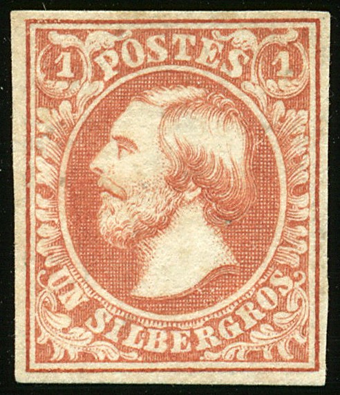 2d, 1 sg 'vermillion' neuf sans gomme, belles marges, point claire au milieu du verso, grande fraîcheur de couleur et bon état de conservation. 2d, 1 sg 'zinnoberrot', ungebraucht ohne Gummi, leichte punktheller Stelle ansonsten tadellos und besonders frisch. Cert. Demuth (1988)