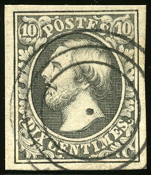 1b, 10 cts 'noir verdâtre', 1er tirage, obl. 3 cercles, TB 1a, 10 cts 'schwarz' 1. Ausgabe, entwertet mit Dreikreisstempel, Pracht. Sign. Goebel