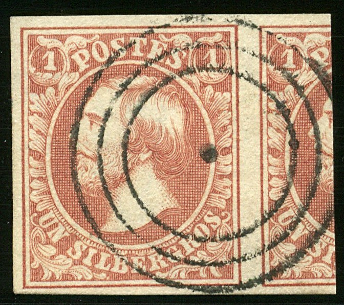 BUREAU DE CLERVAUX 2c, 1 sg 'rouge brun', (voisin), oblitération 3 cercles, TB 2c, 1 sg 'braunrot', (grossen Teil der Nebenmarke), entwertet mit Dreikreisstempel, Pracht. Cert. Goebel (2013)