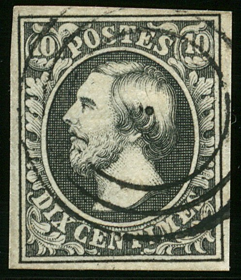 BUREAU DE DIEKIRCH 1b, 10 centimes 'noir légèrement verdâtre', impression fine, oblitération 3 cercles de Diekirch, TB 1b, 10 cts 'leicht grünlichschwarz', feiner Druck, entwertet mit Dreikreisstempel von Diekirch, Pracht. Sign. Demuth BPP