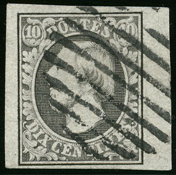 BUREAU D'ECHTERNACH 1j, 10 centimes 'noir gris', bord de feuille, oblitération 8 barres, Superbe! 1j, 10 cts 'schwarzgrau', mit rechtem Bogenrand, entwertet mit 8-Balkenstempel, Luxusstück! Sign. Goebel