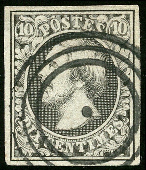 BUREAU DE GREVENMACHER 1j, 10 centimes 'noir gris', oblitération 3 cercles, TB 1j, 10 cts 'schwarzgrau', entwertet mit Dreikreisstempel, Pracht. Sign. Goebel