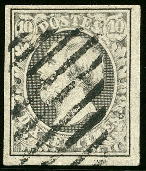 BUREAU DE GREVENMACHER 1k, 10 centimes 'gris', oblitération rurale à barres de Grevenmacher (type 2 ), TB 1k, 10 cts 'grau', entwertet mit 9 rechteckigem Balken von Grevenmacher (Type 2), Pracht. Sign. FSPL