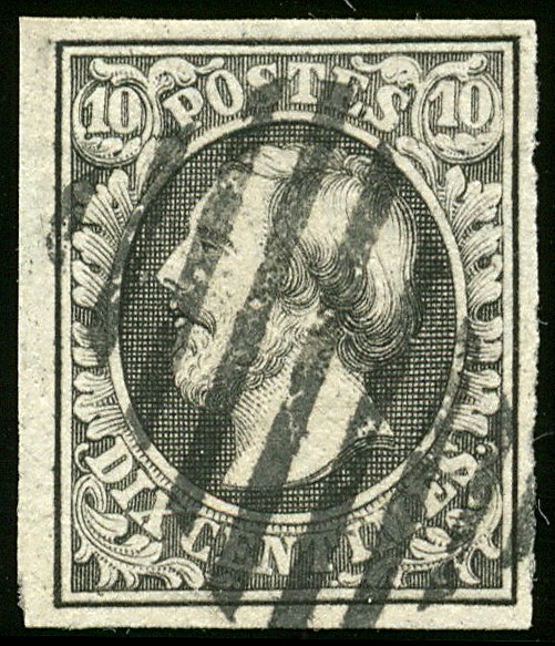 BUREAU DE LAROCHETTE 1f, 10 centimes 'noir foncé', oblitération rurale à barres, TB 1f, 10 cts 'schwarz', entwertet mit 9 rechteckigem Balken van Larochette. Pracht. Sign. Goebel