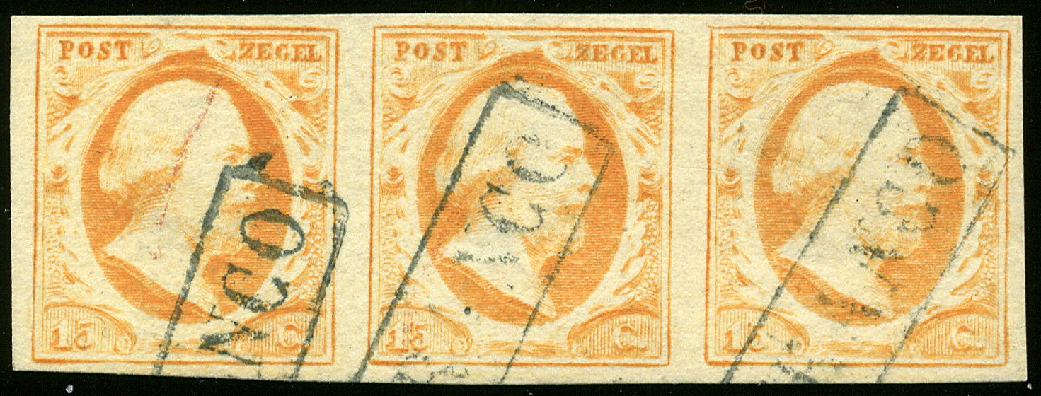 3d, pos. 46/48. Mooie strip van drie (op linker zegel streepje van rood potlood)