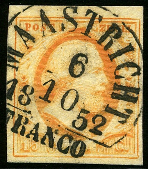 MAASTRICHT B type 2 (EY.125) op 15 cent nr. 3b, pos. 75. Prachtex. met complete afst.