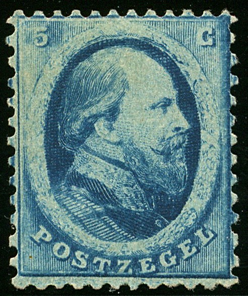 4B, 5 cent blauw, Haarlemse druk, ongebruikt prachtex. met volledige originele, zoals meestal, iets getinte gom. € 400
