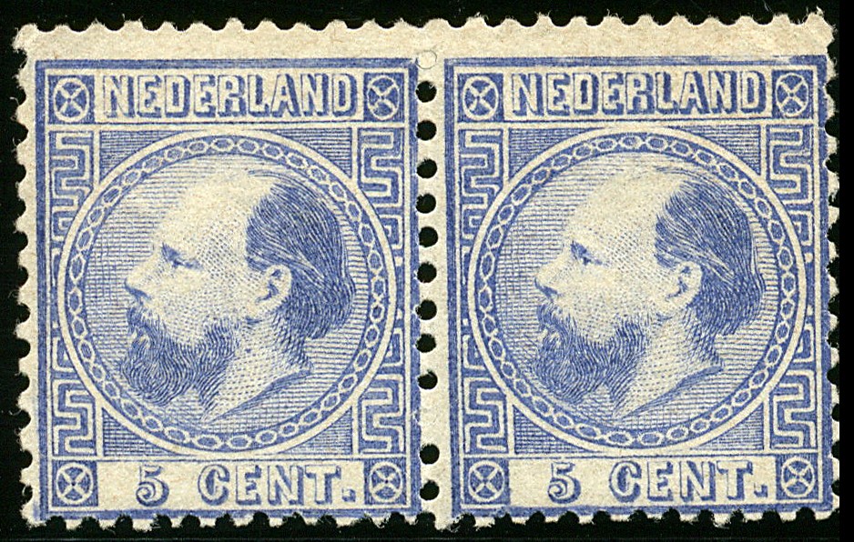 7IIA, 5 cent ultramarijn, Kt. 12½ x 12, in ongebruikt zeer fraai paar (hoekvouw). € 500