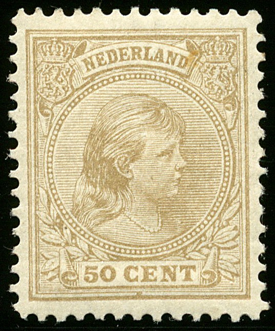 43, 50 cent geelbruin, ongebruikt luxe ex. met minimaal plakkerrestje. € 750+
