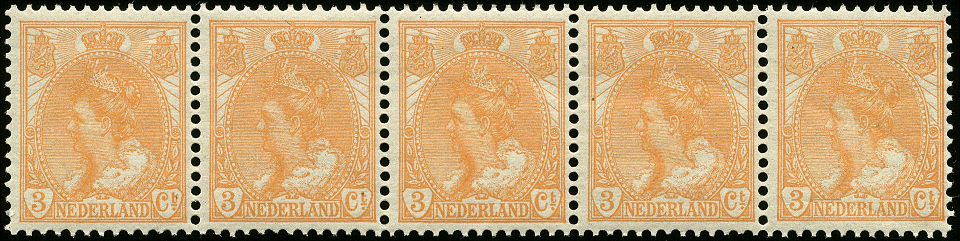 56, 57, 58, 59, 61 en 63, alle 5x postfris, meest in strippen, prachtex. € 542