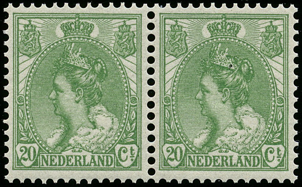 68, 20 cent groen, in luxe postfris prachtpaar. € 3200