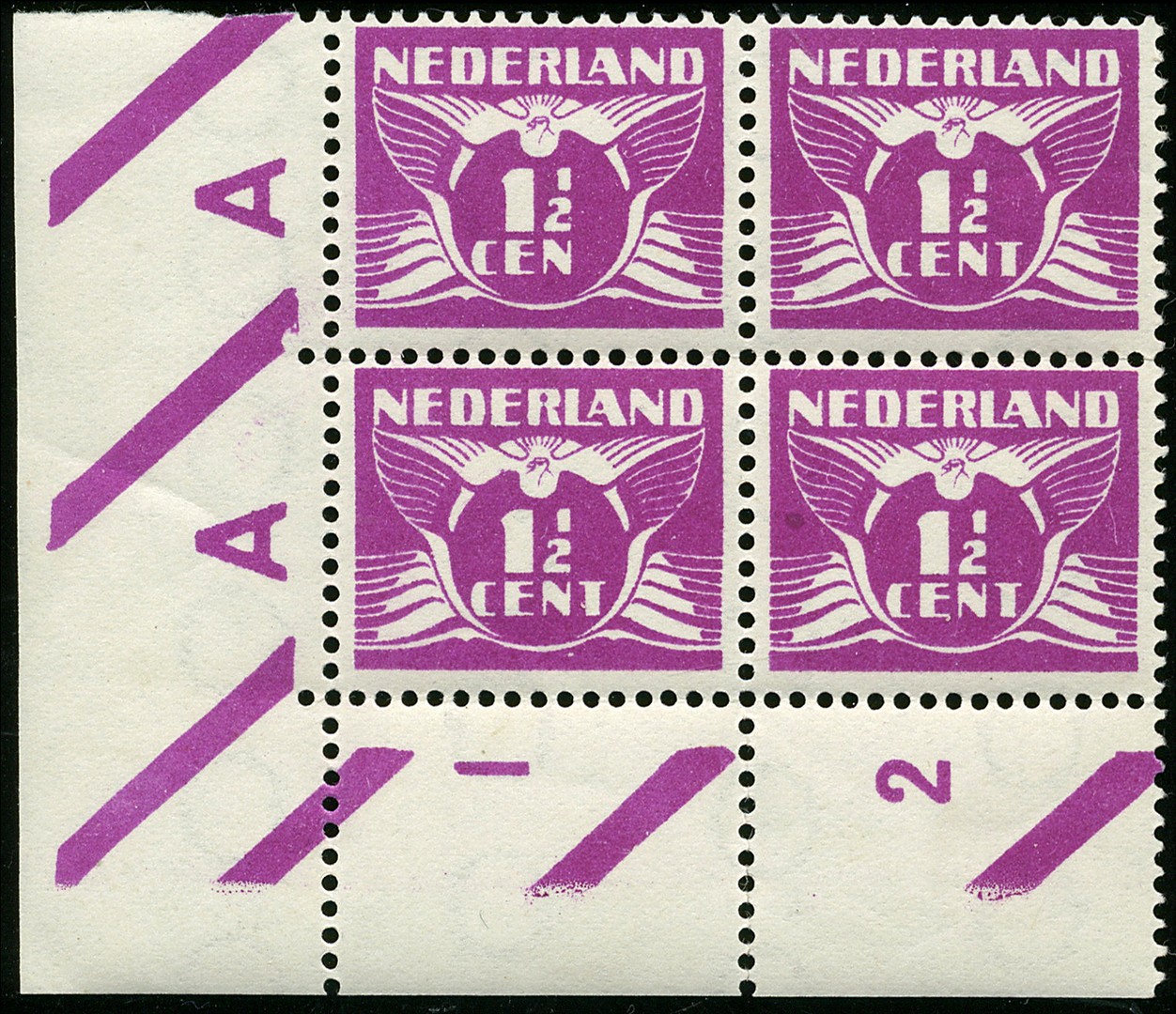 171Af, 1½ CEN in blok met 3x 171, postfris prachtex. € 275
