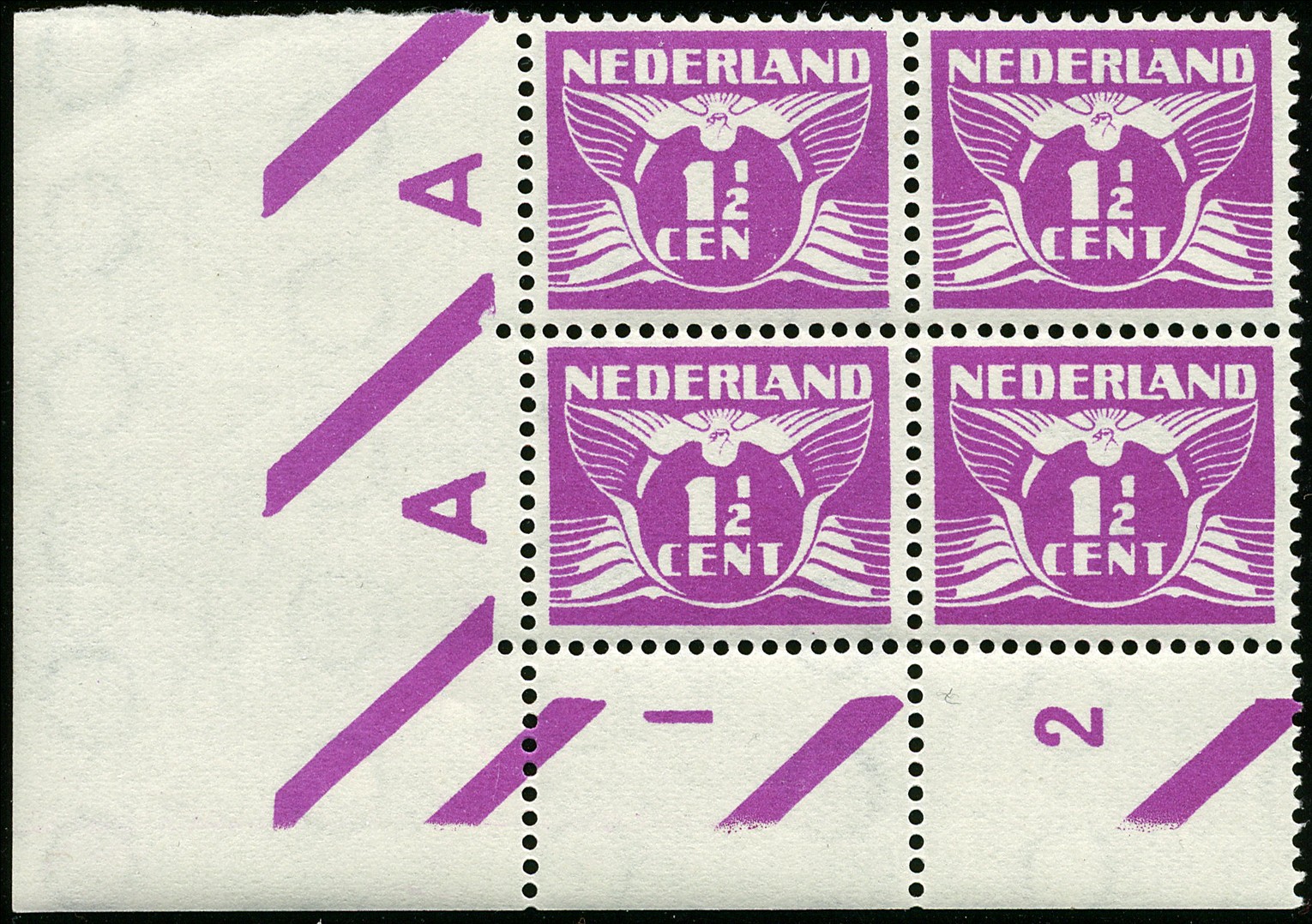 171Af, 1½ CEN in blok met 3 ex. nr. 171, alsmede idem blok waarin de 'T' half is weggevallen. Postfrisse prachtex.