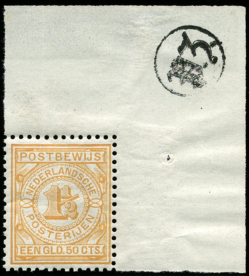 2, 1½ gulden geel, luxe postfris hoekrandstuk met 'PZ'-stempel op velrand. € -,-