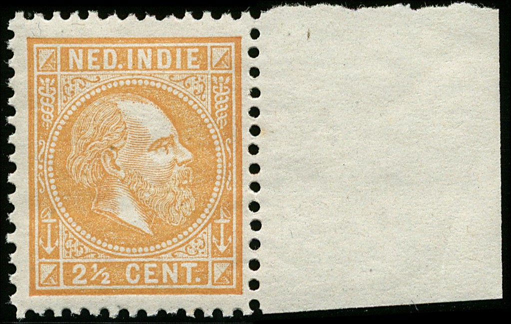 7F, 2½ Cent geel in kamtanding 12½ : 12 gr.g. Prachtex. met velrand, met volle, originele gom en postfris (gom met paar authentieke zwarte puntjes erin). € 300