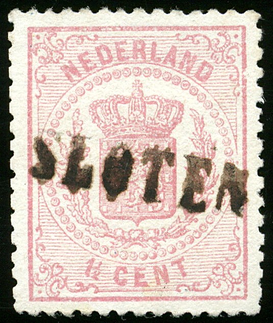 Naamstempel SLOTEN met schreefletters in zwart op 1½c nr. 16. Prachtex. met ideale afst.