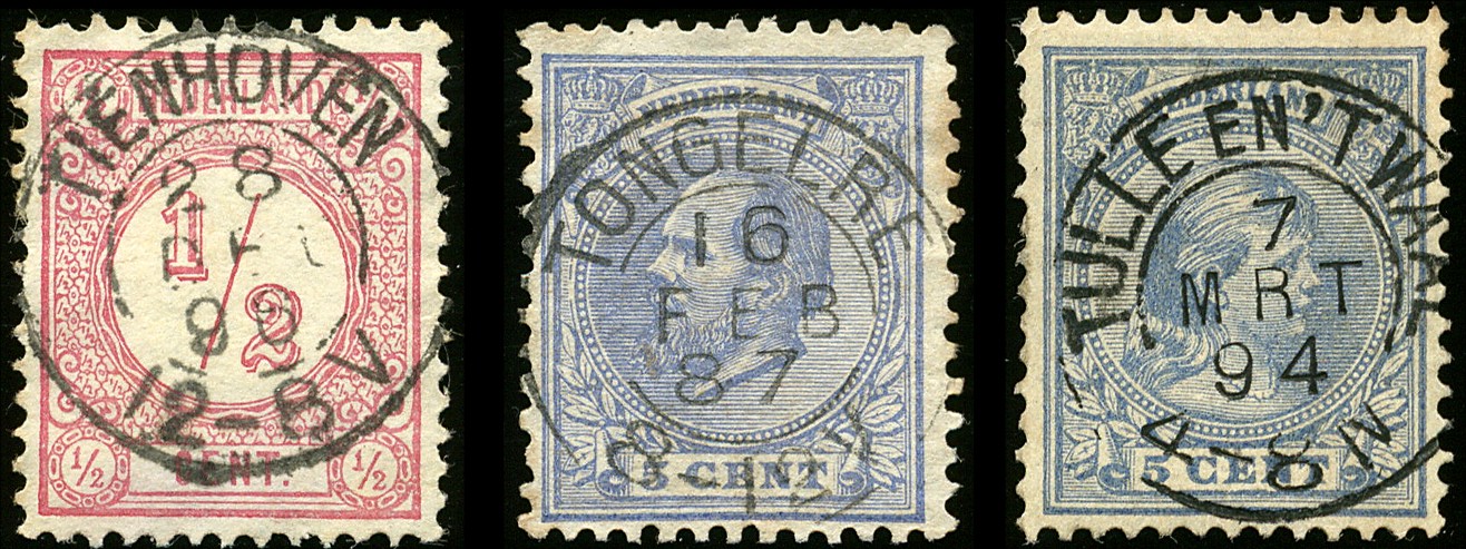 Tienhoven(30), Tongelre(19), Tricht(31 en 38), Tulle en 't Waal(35) en Tzummarum(40). Prachtafdrukken. Stempelwaarde € 237