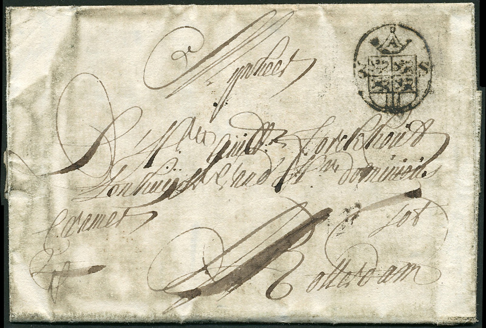 Prachtige afdruk 3-Stuiverstempel (PEP 10510-01) op iets smoezelige, cpl. vouwbrief van Amsterdam 19-6-1691 naar Rotterdam