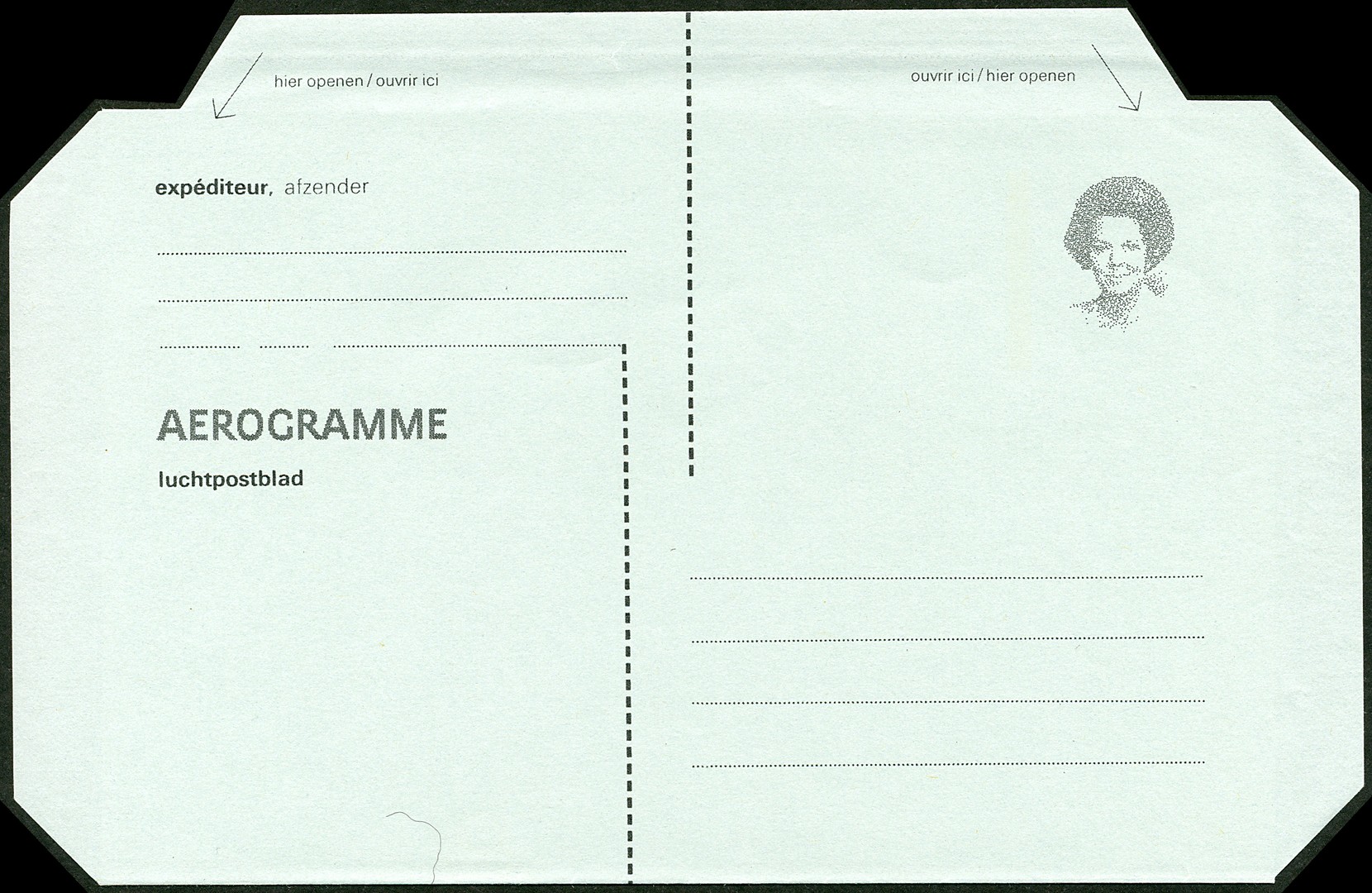 Luchtpostblad G27a met variëteit 'Waarde-aanduiding en landsnaam ontbreken'. Ongebruikt prachtex.